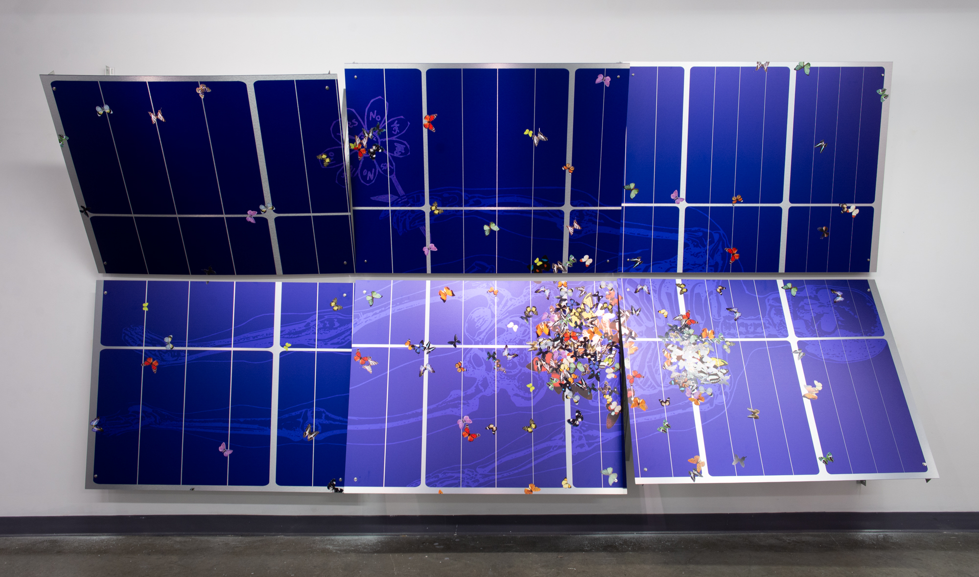 UV print to die-cut brushed aluminum dibond, artist made vinyl stickers, solar panel hinges
